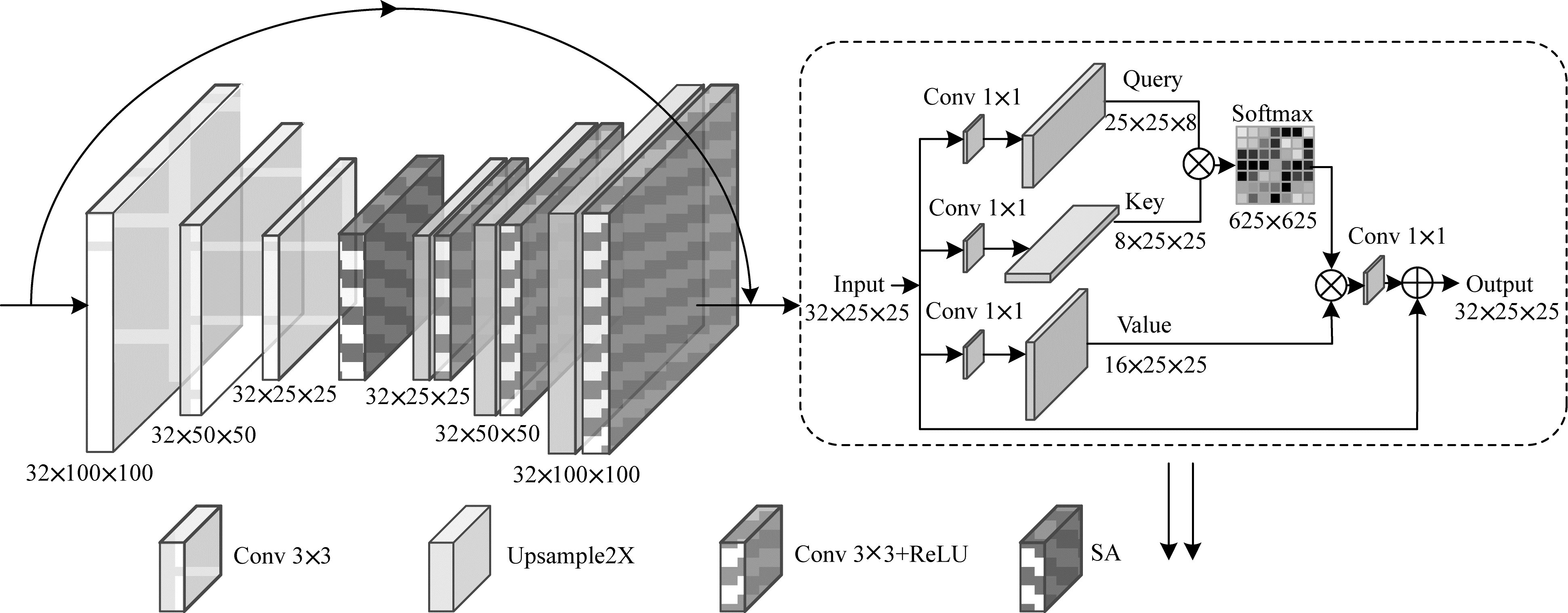 其中SA模块的输出公式为: