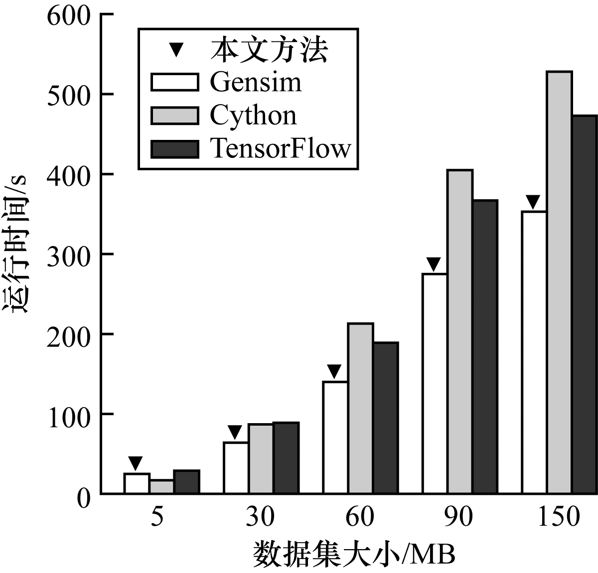 | 图 8 Word2Vec任务运行时间对比 Fig. 8 The comparison of Word2Vec task runtime | |